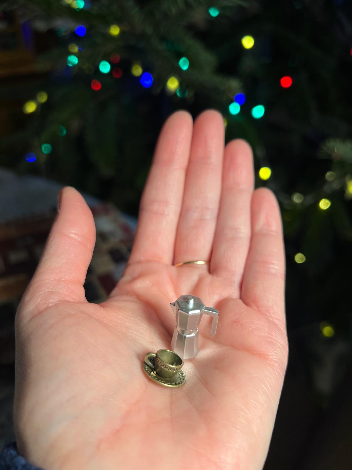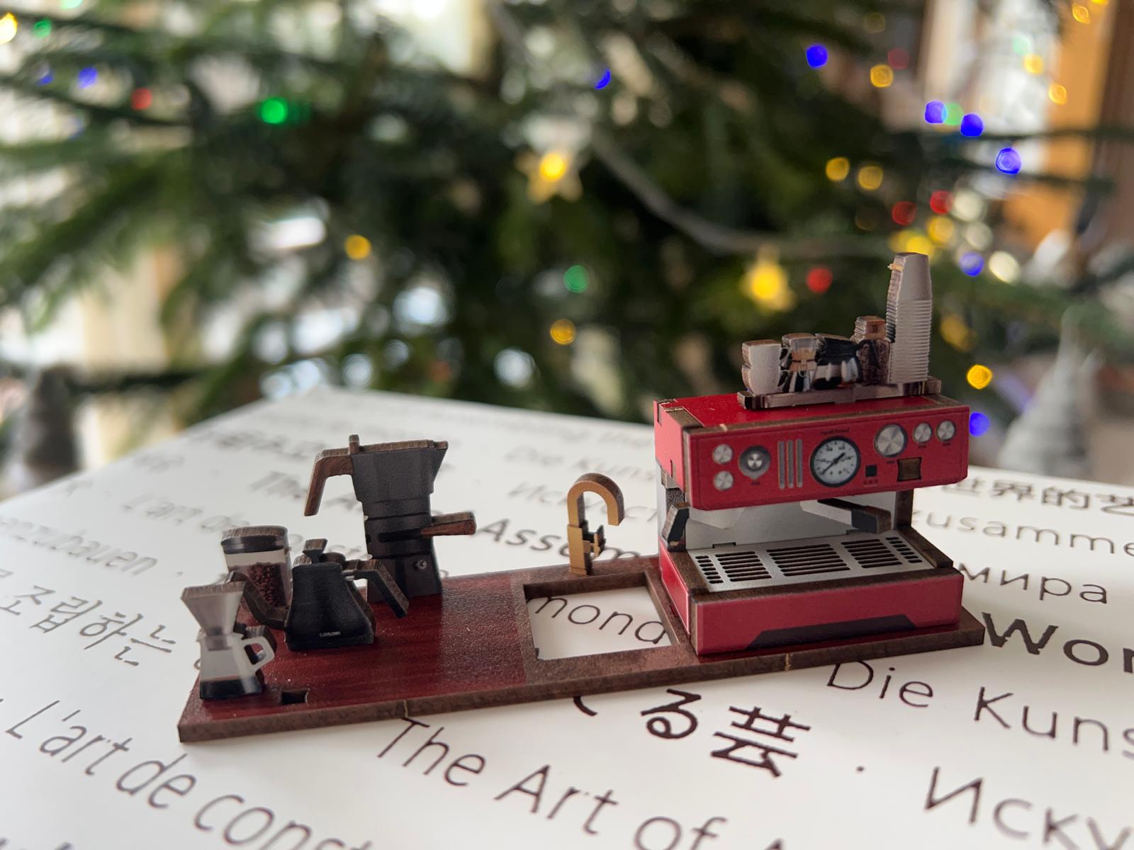 Na zdjęciach widzicie mnie zajętą składaniem miniaturowej kawiarni – uwielbiam takie zabawy. Dają mi magiczny wręcz relaks. Rodzina, gdy mnie ogląda przy tym rodzaju zajętości, podłącza się do tej zabawy.
